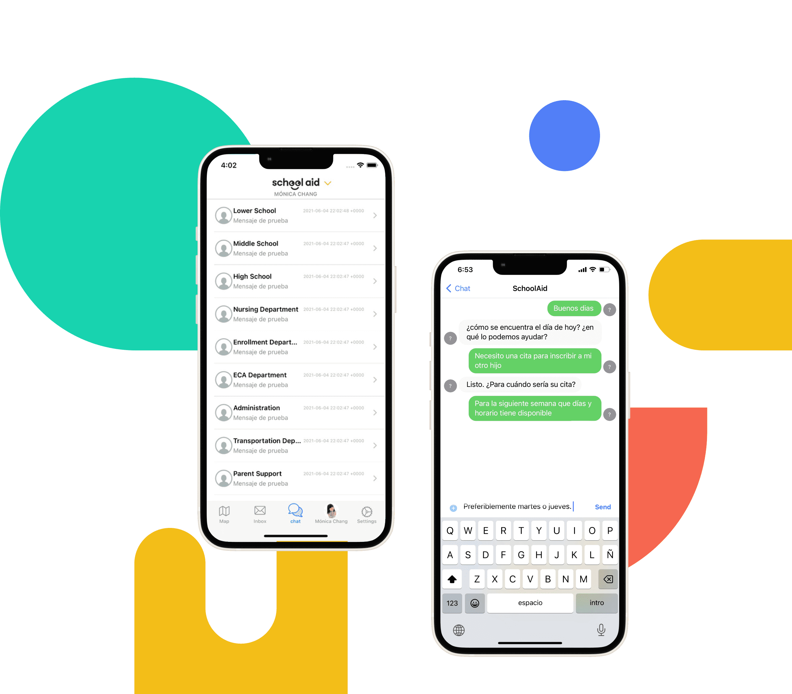Mejora la comunicación entre el colegio y los padres de familia. Crea canales de chat por departamento, área o nivel de grado para mejorar los tiempos de respuesta y la atención al cliente para los padres. Gestiona chats entre padres, maestros y personal administrativo.